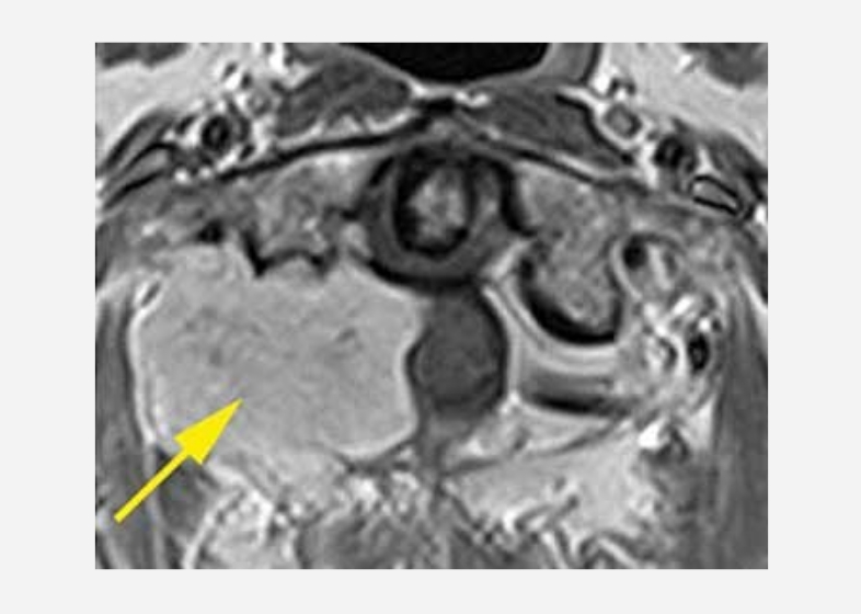 第1-2頚椎部に腫瘍を認める